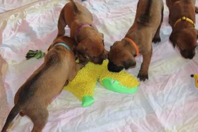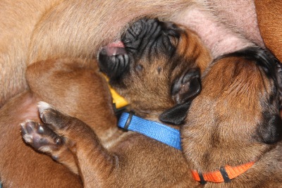 Heute Abend kommt mein Tierarzt zum Untersuchen, Impfen und Chipen. Morgen ist Wurfabnahme und die Rabauken bekommen offiziell ihre Namen.