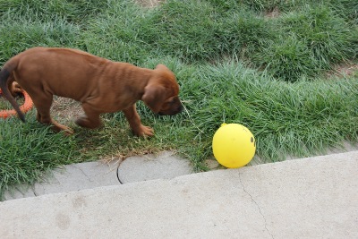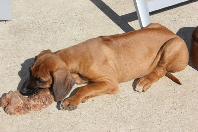 Chad beim knabbern an der Torgas-Wurzel. Die ist bei den Welpen sehr beliebt!