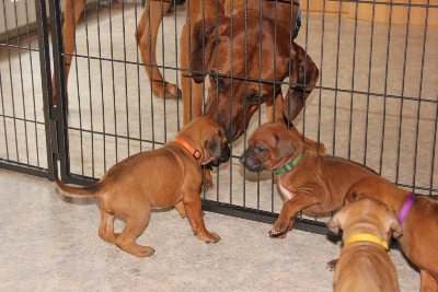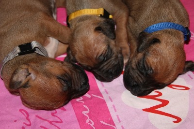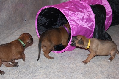 Unser Sixpack ist nun fast 3 Wochen alt. Ihre Augen sind inzwischen komplett geöffnet und auf den Beinchen werden sie immer sicherer. Sie können sogar schon bellen und knurren! :-)