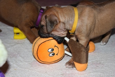 Es gab neues Spielzeug in den Farben der Welpen und Herr Lila hat sich sofort seins genommen! Ich möchte mal betonen, KEINES meiner Fotos sind gestellt! Auch dieses nicht!!!!!